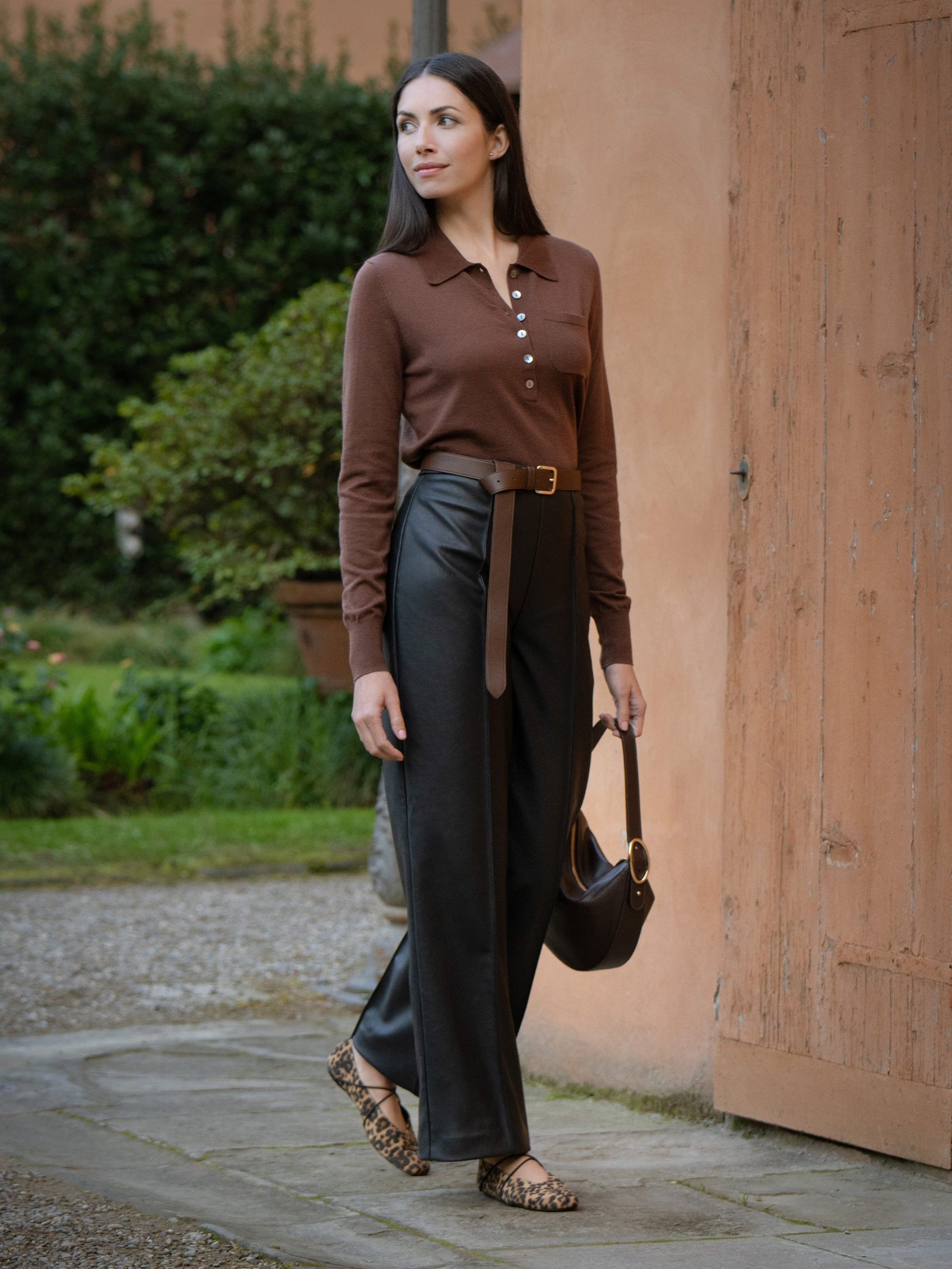 I relish the challenge of designing a handbag that I can wear in different ways. The Evelina is a chic shoulder bag that brilliantly transforms into a striking wristlet when you pull the strap all the way through the buckle. The slim, half-moon silhouette fits my phone, wallet, sunglasses, and keys—so it’s perfect for